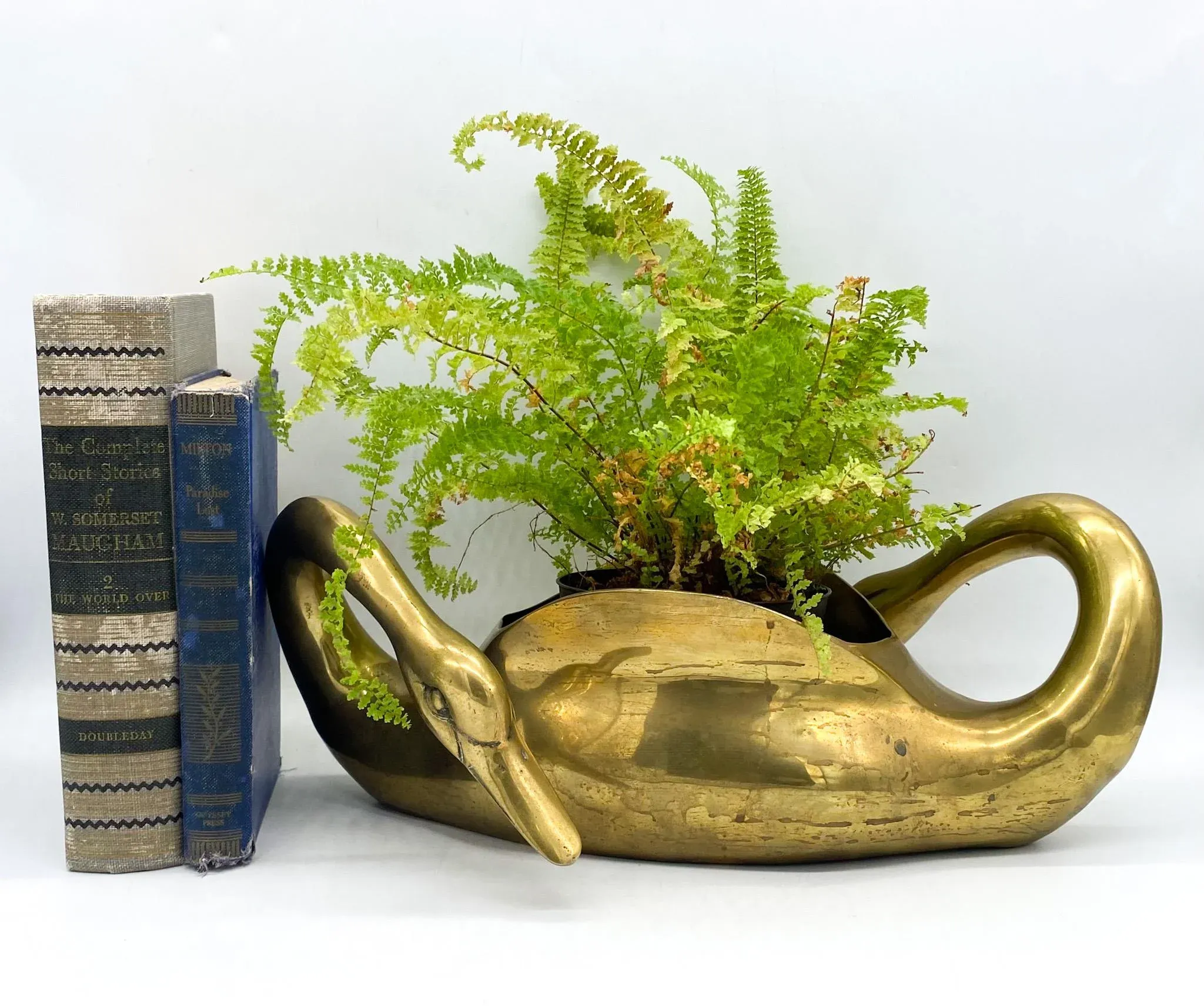 Vintage Brass Swan Planters Pine Grove Trading Company